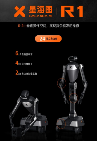 近日,在世界機器人大會上,星海圖首次公開了從硬件到軟件完全自主正向研發(fā)的全尺寸輪式雙臂具身本體R1,能夠有效執(zhí)行全場景、全地形、全空間的通過,完成搬箱子、撿零件、開關門、按按鈕等操作任務。