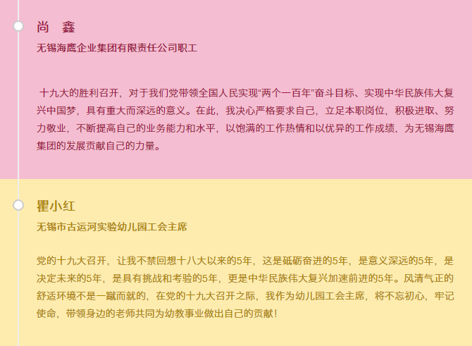 無錫產(chǎn)業(yè)發(fā)展集團(tuán)有限公司工會 ![]() 無錫威孚高科技集團(tuán)股份有限公司工會 ![]() 中航工業(yè)航空動力控制系統(tǒng)研究所(614所)工會 ![]() 一汽解放汽車有限公司無錫柴油機廠工會 ![]() 無錫創(chuàng)業(yè)投資集團(tuán)有限公司工會 ![]() 無錫地鐵集團(tuán)有限公司工會 聽了習(xí)總書記振奮人心的工作報告,錫城職工燃了 ![]()