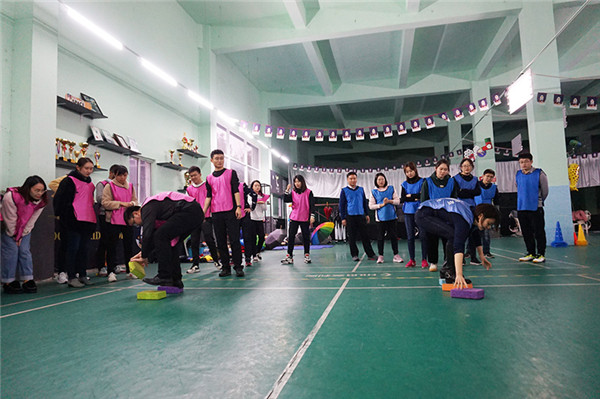 “趣味毛毛蟲”大戰(zhàn) “一二一,一二一……” 團(tuán)隊步伐一致,毛毛蟲前進(jìn)的速度才能更快。 為了共同目標(biāo)而努力,提升了團(tuán)隊精神和團(tuán)隊意識。