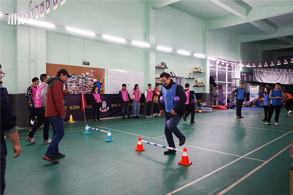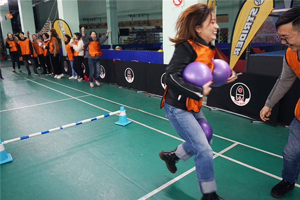 “企鵝漫步”接力 團(tuán)隊越來越默契 “加油”、“穩(wěn)住”、“漂亮” 隊員之間氣氛越來越融洽