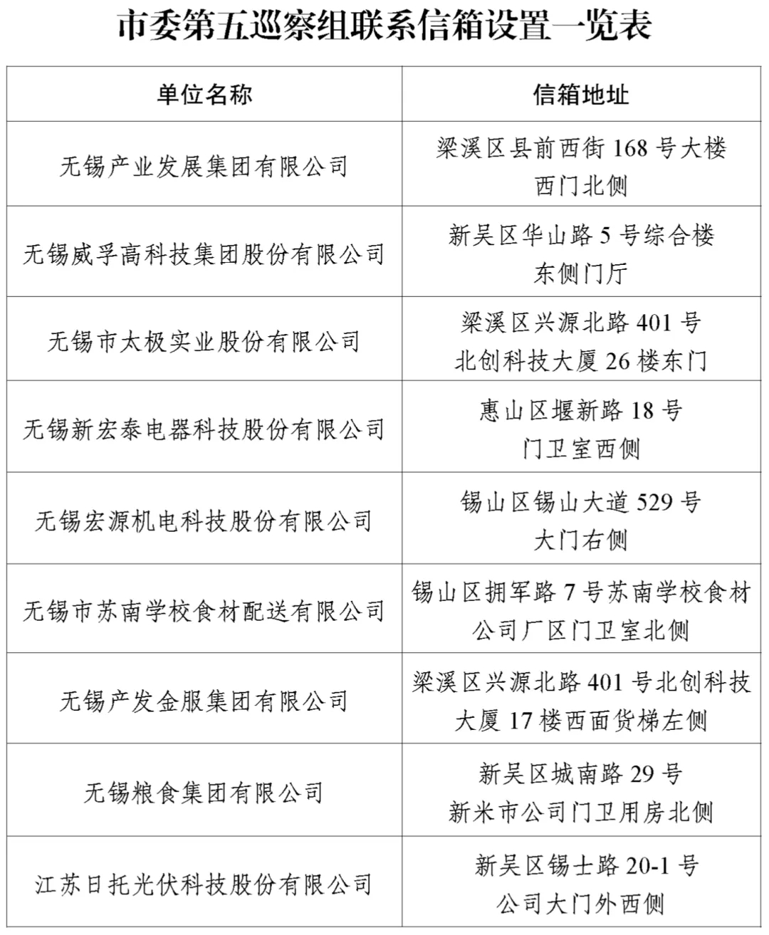 市委巡察公告 根據(jù)市委巡察工作領(lǐng)導小組統(tǒng)一部署,市委第五巡察組對無錫產(chǎn)業(yè)發(fā)展集團有限公司黨委開展常規(guī)巡察,時間為2024年4月25日至7月5日。根據(jù)有關(guān)規(guī)定,市委巡察組主要受理反映無錫產(chǎn)業(yè)發(fā)展集團有限公司黨委領(lǐng)導班子及其成員、下一級主要負責人以及相關(guān)重點崗位干部(含已離退休、已調(diào)離)的來信來電來訪。其他不屬于巡察受理范圍的信訪問題,將按規(guī)定轉(zhuǎn)交有關(guān)部門認真辦理。市委巡察組受理信訪時間截止到2024年7月2日。 巡察期間設(shè)專門舉報電話:18800559869,可同時接收短信、微信,接聽時間為工作日8:00-18:00; 郵政信箱:江蘇省無錫市0450號郵政信箱; 郵政編碼:214031; 聯(lián)系信箱:無錫產(chǎn)業(yè)發(fā)展集團有限公司(梁溪區(qū)縣前西街168號)大樓西門北側(cè)。 特此公告。 中共無錫市委第五巡察組 2024年4月25日 ![]() ![]() |